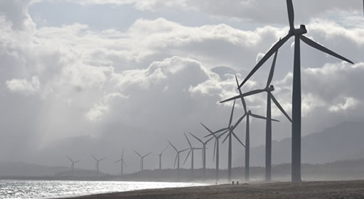 A wind turbine’s blades convert kinetic energy from the movement of air into rotational energy, a generator then converts this rotational energy to electricity via electromagnetic induction. The wind power that is generated is proportional to the dimensions of the rotor and to the cubing of the wind speed.